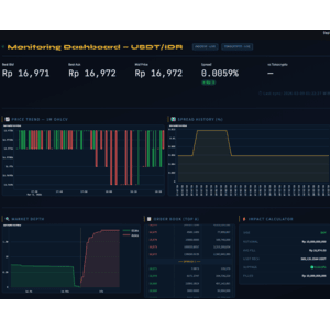 A high-fidelity monitoring terminal for the USDT/IDR pair, built for liquidity analysis and execution simulation across Indonesian exchanges. This project focuses on minimizing latency and maximizing the visibility of order book depth through a "Terminal-as-a-Service" UI.